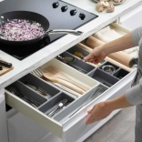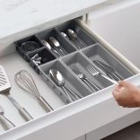 Les compartiments de différentes tailles accueillent cuillères, fourchettes, couteaux et petits accessoires de cuisine pour les avoir toujours à portée de main.