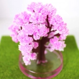 Après arrosage, de fins cristaux roses se forment en quelques heures, imitant une sakura en fleurs et transformant un simple petit arbre en une décoration spectaculaire.