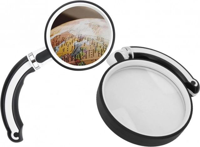 La poignée pliante permet un rangement facile de la loupe et une portabilité, idéale pour voyager.