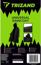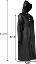 La coupe allongée couvre la majeure partie du corps et la capuche à cordons protège de la pluie latérale. Longueur sans capuche 110 cm, dimensions totales 145 × 70 cm.