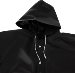 La surface lisse en EVA fait glisser les gouttes, de sorte que le poncho n'absorbe pas l'eau et que les vêtements restent au sec. Le matériau est léger, résistant et à séchage rapide.