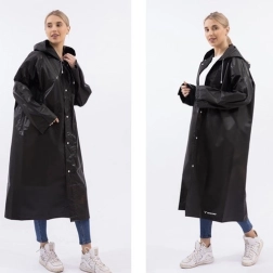 Un poncho de pluie léger et résistant en EVA offre une protection imperméable fiable, avec une fermeture à boutons-pression et une capuche à cordon de serrage. Sa coupe oversize universelle n'entrave pas les mouvements, le poncho sèche rapidement et il est idéal pour la ville, les voyages et le vélo.