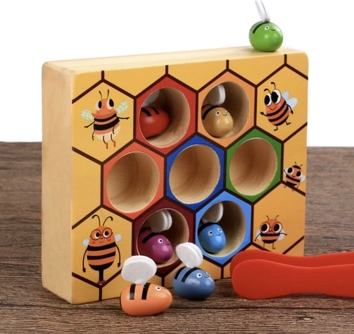 Chaque abeille a sa couleur et sa place dans le rayon. En jouant, les enfants exercent naturellement la reconnaissance des couleurs, la logique et la perception spatiale.