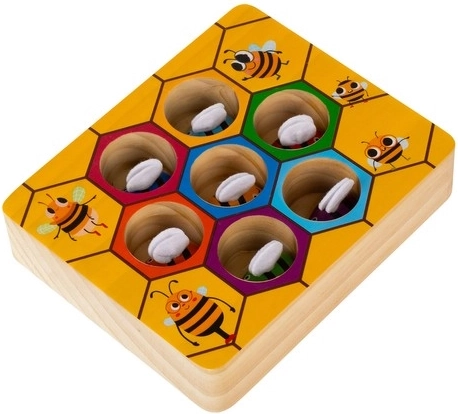 Le jeu en bois Rayon de miel KRUZZEL allie amusement et apprentissage. À l’aide de la pince, les enfants attrapent délicatement les abeilles colorées et les insèrent dans les ouvertures hexagonales correspondantes. Ce charmant jeu d’encastrement moteur développe la motricité fine des doigts, la coordination œil–main et la patience, tandis que les couleurs vives renforcent la perception visuelle et le tri.