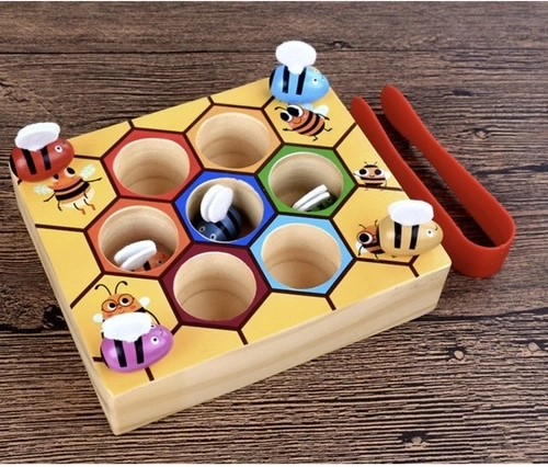 Découvrez un jeu malin et amusant pour les tout-petits : le rayon de miel en bois KRUZZEL avec pince et petites abeilles colorées. Les enfants attrapent les abeilles et les placent dans les bons hexagones, entraînant ainsi la motricité fine, la coordination œil–main et la reconnaissance des couleurs. Sa conception en bois sûre et ses dimensions compactes sont idéales à la maison comme en voyage.