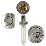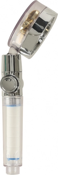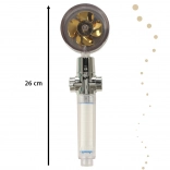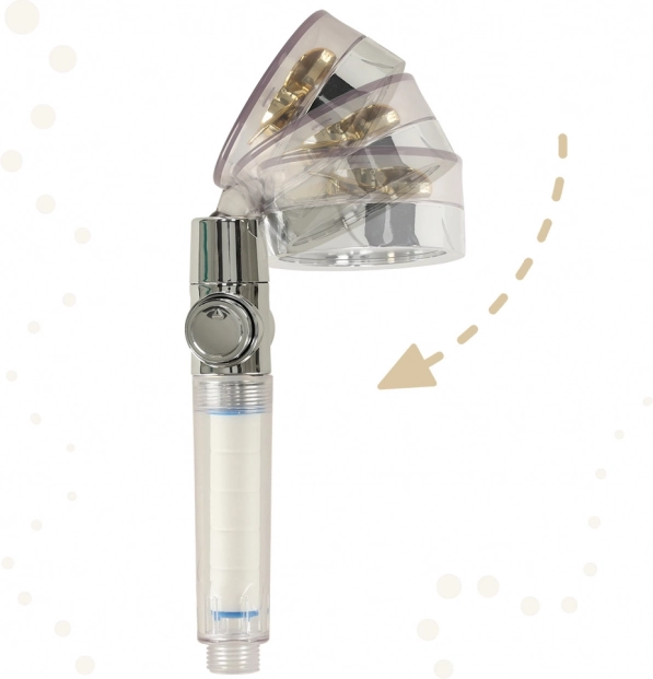 Le pommeau de douche avec turbine dorée est la solution idéale pour chaque salle de bain moderne. Grâce à un grand nombre de petits orifices et à la turbine intégrée, il améliore la pression de l'eau tout en économisant l'eau et les coûts des factures. Le filtre interne aide à résoudre les problèmes d'eau dure, ce qui est bénéfique tant pour vos cheveux que pour votre peau.