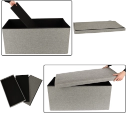 Ce pouf de rangement pliable est la solution idéale pour ceux qui recherchent un accessoire fonctionnel et élégant pour leur intérieur. Il offre confort et praticité – il sert de repose-pieds, siège ou espace de rangement pour diverses petites choses. Ne prend pas beaucoup de place et sa couleur grise convient à chaque pièce.