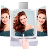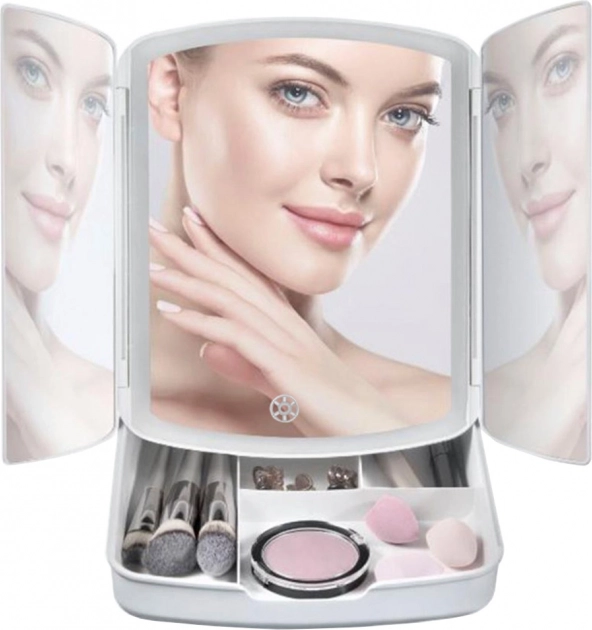 Découvrez le confort et la précision du maquillage avec ce miroir LED multifonction. La surface centrale complétée par des volets latéraux offre une vue large, tandis que le petit miroir rabattable avec grossissement 5× est idéal pour l’eyeliner, les sourcils ou la pose de lentilles de contact. Le bouton tactile permet de passer rapidement entre lumière froide et chaude et de régler la luminosité en continu.