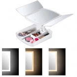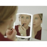 Élégant miroir de table avec éclairage LED offrant une lumière parfaitement uniforme pour le maquillage quotidien et le soin de la peau. Grâce au contrôle tactile, au choix de lumière chaude ou froide et à la variation d’intensité, ajustez facilement la luminosité et la teinte. Un organiseur dans le socle garde vos produits à portée de main, et le miroir amovible avec grossissement 5× facilite les détails précis.