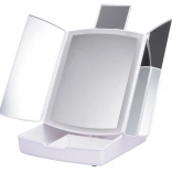 Les volets latéraux élargissent l’angle de vue et le socle avec compartiments garde les accessoires bien organisés à portée de main – idéal à la maison comme en voyage.