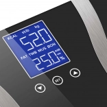 Pèse-personne analytique élégant pour le suivi de santé à domicile, mesure le poids, la masse grasse, l’eau, la masse musculaire et osseuse ainsi que le BMR. Plateau robuste en verre trempé 6 mm, grand écran LCD, mémoire pour jusqu’à 7 utilisateurs, AUTO OFF et capacité jusqu’à 180 kg. Unités kg/lb/st:lb et patins antidérapants sûrs pour un usage quotidien.