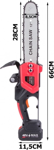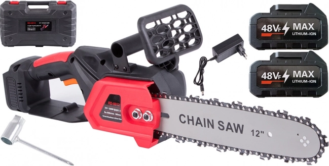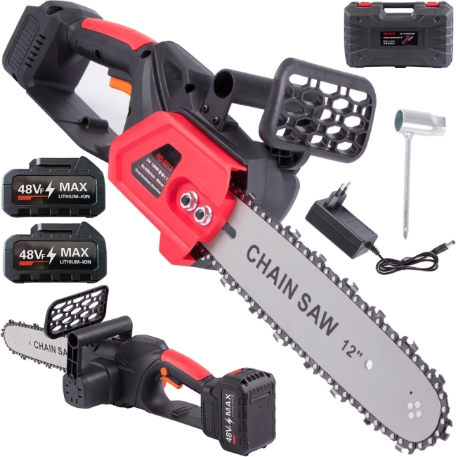Tronçonneuse sans fil légère et performante avec un guide de 30 cm et un moteur 1200 W pour des coupes rapides et nettes. Livrée avec 2× batteries pour travailler plus longtemps sans interruptions, elle dispose d’une poignée ergonomique, d’un protège-main et est idéale pour la préparation du bois de chauffage comme pour l’entretien du jardin. Le tout est rangé dans une mallette robuste pour un transport facile.