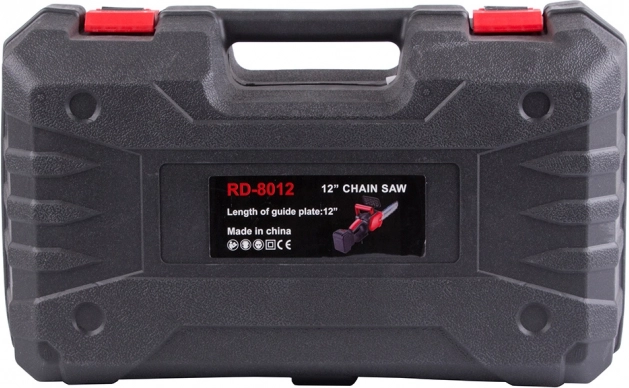 - Guide, chaîne, 2× batteries, chargeur, clé, mallette