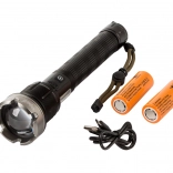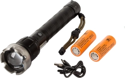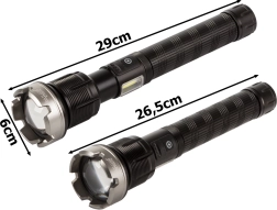 La lampe fait également office de powerbank, ce qui en fait un outil multifonction pour tout utilisateur. La poignée ergonomique et la surface antidérapante assurent une utilisation confortable et sûre. Une longue autonomie est garantie par une batterie lithium‑ion de haute qualité.