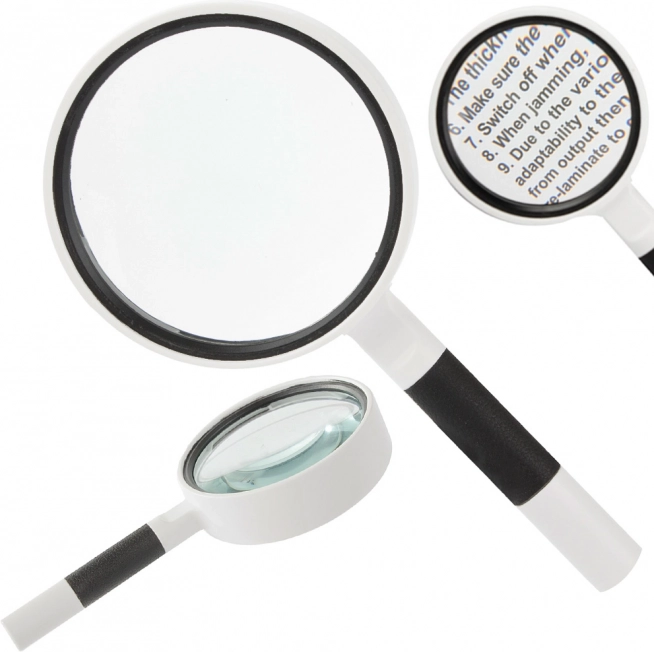 La loupe est fabriquée en plastique léger et résistant, assurant sa longue durée de vie. Elle possède une poignée antidérapante confortable qui s'adapte parfaitement à la main et permet une utilisation confortable.