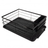 L’égouttoir à vaisselle Ruhhy noir au style loft allie acier résistant et accessoires pratiques pour un usage quotidien. Grâce au plateau d’écoulement à vidange rapide et au panier à couverts amovible, votre cuisine reste sèche et ordonnée. Structure stable et dimensions compactes se logent facilement à côté de l’évier.