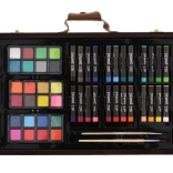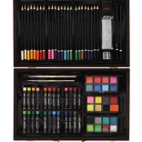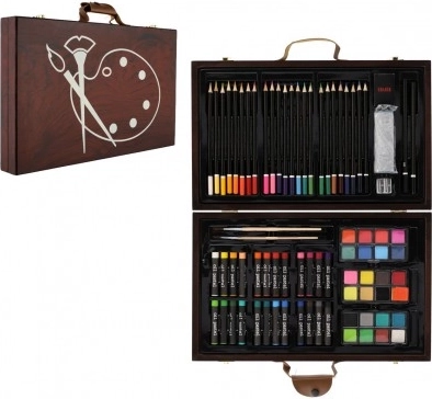 La mallette en bois pleine de couleurs et d'accessoires est le compagnon parfait pour les jeunes créateurs. Elle contient tout ce dont vous avez besoin pour peindre et dessiner, le tout dans un emballage élégant et facilement transportable :