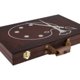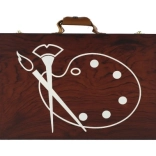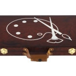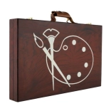 La mallette artistique en bois est conçue pour être facilement transportable grâce à une poignée pratique et à un matériau résistant.