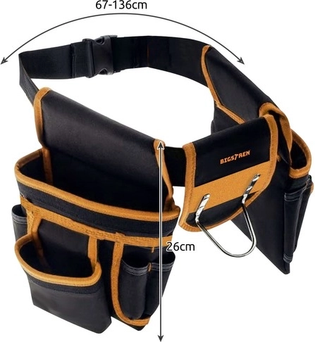 La ceinture à outils Bigstren est équipée de 22 poches, dont deux boucles et un support pour marteau, permettant de stocker et transporter en toute sécurité divers outils tels que tournevis, clés, pinces, rubans à mesurer et même des outils électriques.