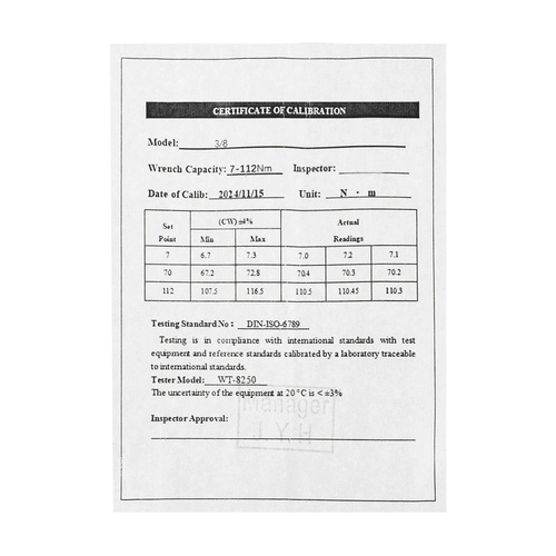 - Kit pratique : clé, étui, certificat d’étalonnage.