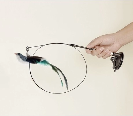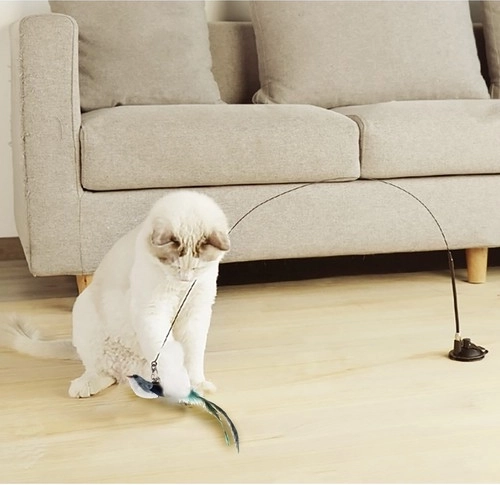 Le jouet permet aux chats de chasser et d’attraper un petit oiseau à plumes, satisfaisant ainsi leur instinct de chasse naturel. Il apporte amusement et saine distraction, influençant positivement le comportement quotidien.