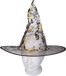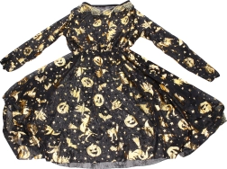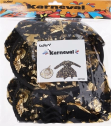Élégant déguisement de sorcière de couleur dorée comprenant une robe et un chapeau, idéal pour le carnaval, les bals masqués et Halloween. Disponible en tailles S, M, L.