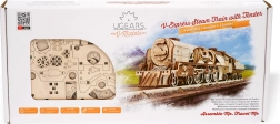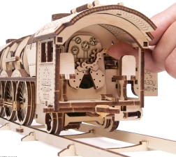 UGEARS V-Express est une maquette en bois d’exception pour les exigeants, qui marie le charme du rail classique à une ingénierie astucieuse. Le « carénage » ouvert de la locomotive permet d’observer le mouvement des engrenages, des trains d’engrenages et du mécanisme à manivelle en action. Grâce au moteur à remontoir, le modèle roule réellement et offre une expérience de conduite réaliste, y compris la roue libre et la marche arrière.