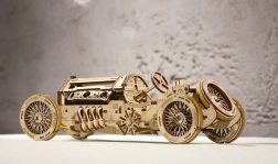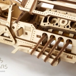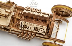 Découvrez la magie des premières voitures de course avec le modèle minutieusement détaillé UGEARS U9 Grand Prix. Ce modèle mécanique en bois à remontage offre une boîte de vitesses fonctionnelle (point mort et marche arrière), une direction, un essieu avant suspendu et des pneus caoutchoutés pour une meilleure adhérence. Grâce au moteur V8 visible avec pistons mobiles et ventilateur de refroidissement, il offre un spectacle fascinant en mouvement comme sur une étagère.