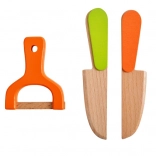 Le set comprend 2 petits couteaux, une planche et une imitation d’éplucheur – les enfants peuvent éplucher, couper et servir comme de vrais chefs.