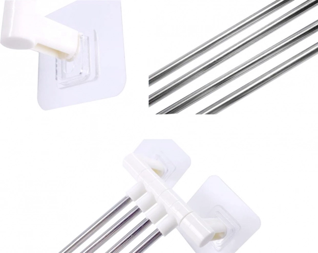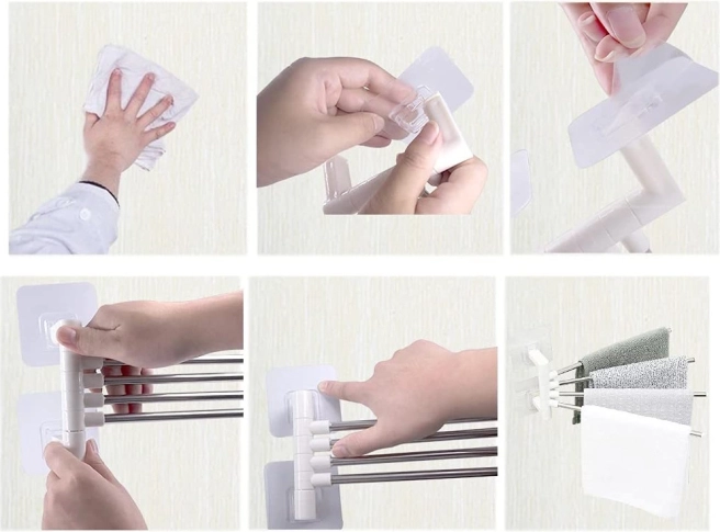 Le montage est rapide et propre – sans perçage. La surface adhésive puissante tient sur les surfaces lisses, sans abîmer le carrelage. Idéal pour la salle de bain, la cuisine ou la buanderie, où vous apprécierez le gain de place et l’accès facile aux serviettes.
