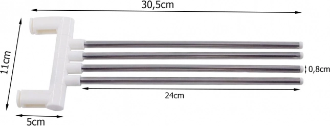 Chaque bras peut être pivoté et réglé séparément pour que les serviettes sèchent mieux sans se gêner. La longueur de 24 cm est idéale pour les serviettes comme pour les torchons.