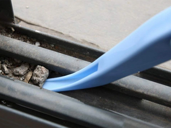 - Brosse avec grattoir pour nettoyer les fentes et les rainures