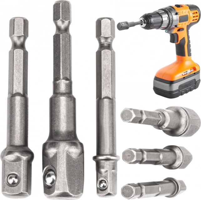 L'ensemble comprend trois réductions fabriquées en acier résistant, garantissant leur longue durée de vie. Les réductions permettent l'utilisation de tournevis avec des douilles de différentes dimensions.