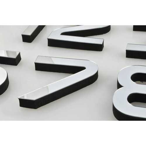 Les caches argentés brillants des chiffres créent un effet 3D moderne qui se démarque sur tout mur et apporte de la luminosité à l’intérieur.
