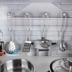 Placez la lampe LED où vos enfants en ont le plus besoin – dans un placard, dans le four ou sous l’élément supérieur. Les boutons rotatifs de la cuisinière émettent un agréable « clic » et renforcent l’illusion de cuisiner pour de vrai.