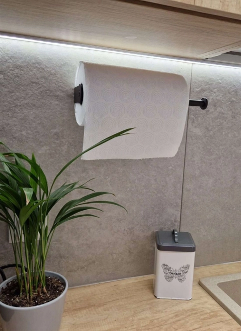 Minimisez le désordre sur le plan de travail de la cuisine avec le support pour essuie-tout noir. Son mécanisme rotatif assure que les serviettes sont toujours à portée de main. Le blocage anti-rotation empêche la rotation indésirable du rouleau, permettant de retirer facilement une feuille. Le support peut être monté sur le mur ou une armoire, horizontalement ou verticalement, soit par vissage, soit via des bandes adhésives 3M.