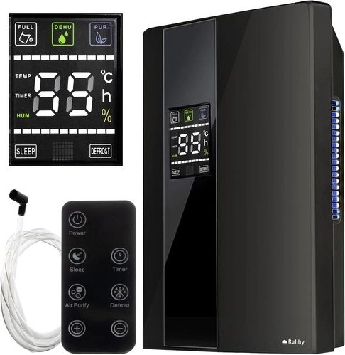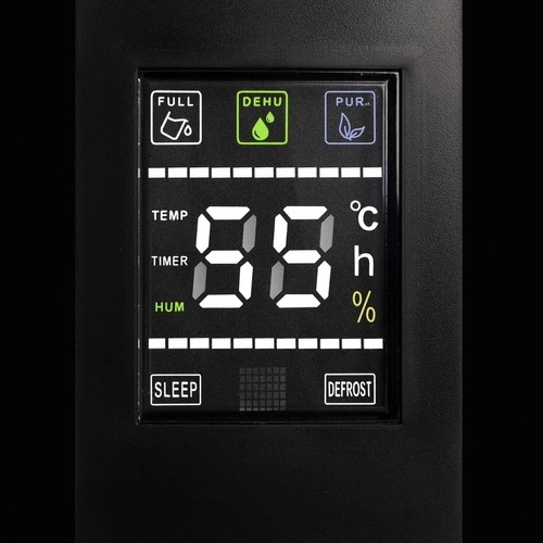SPÉCIFICATIONS -hygromètre : oui; hygrostat : oui; thermomètre : oui; afficheur LCD rétroéclairé facile à lire : oui; minuterie : 1-24 h; fonction SLEEP : oui; fonction DEFROST : oui; télécommande : Oui ; Convient pour : 1. pièce : max. 30m2; Volume : 40db ; consommation électrique : 90W ; arrêt automatique lorsque le réservoir est plein : oui ; convient pour : 1 : Poids : 1,75 kg ; poids emballé : 1,5 m : 2,22 kg.
