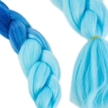 Fantastiques cheveux synthétiques dans des nuances bleues ombrées pour un look frappant et unique. Idéal pour ceux qui veulent se démarquer.