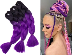 Ce style ombre violet éclatant est idéal pour des coiffures originales, que vous pouvez varier selon les occasions. Créez un look éblouissant pour un festival, un carnaval ou tout autre événement grâce à ces tresses polyvalentes.