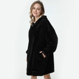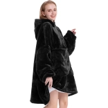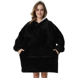 Couverture portable à capuche – sweat oversize en polaire douce, noir