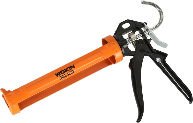 Pistolet extrudeur universel WOKIN pour cartouches de silicone, d’acrylique et de colles, doté d’un corps rotatif 360°, d’une construction métallique et d’une poignée ergonomique pour une application précise et confortable des mastics lors des travaux de montage, d’étanchéité et de finition.