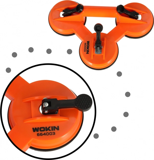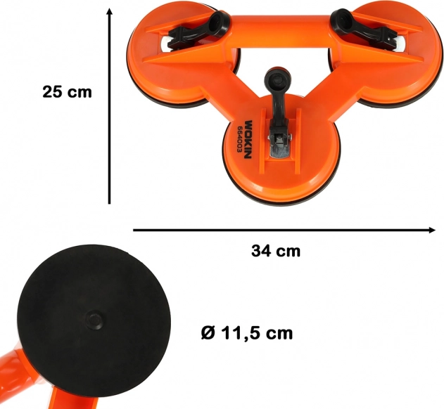 La ventouse sous vide triple professionnelle WOKIN, avec une capacité de charge de 75 kg, facilite le transport et le positionnement en toute sécurité du verre, des carreaux émaillés et des revêtements grand format. Trois points de succion d’un diamètre de 11,5 cm assurent une prise stable sans rayer la surface, tandis que la poignée ergonomique offre une manipulation précise et un meilleur confort de travail.