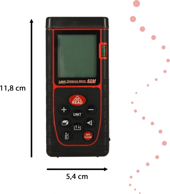 Le télémètre offre diverses fonctions de mesure telles que la mesure de longueur, de surface, de volume et le théorème de Pythagore, et il est équipé d'un niveau à bulle intégré pour une utilisation facile.