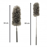 Le plumeau avec poignée télescopique offre une solution pour un dépoussiérage rapide et efficace de toutes les surfaces. Grâce à sa conception extensible, qui peut être allongée jusqu'à 83 centimètres, il atteint facilement les zones élevées et éloignées sans nécessiter d'échelle.