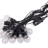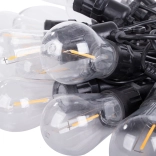 La chaîne se termine par un raccord vissé étanche, vous pouvez donc facilement relier plusieurs guirlandes et adapter la longueur à vos besoins. Les globes transparents des ampoules sont en plastique résistant, léger et pratique pour des déplacements fréquents et une utilisation saisonnière.