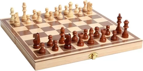 - Ensemble de jeux en bois 3-en-1 (échecs, dames, trictrac/backgammon)