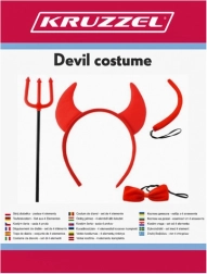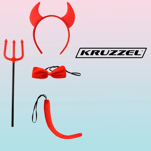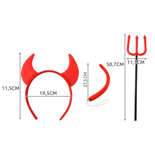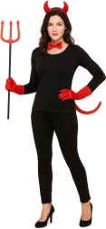 Cornes, noeud papillon, queue et trident – le tout assorti en rouge pour un look diabolique instantané sans chercher d’autres accessoires.