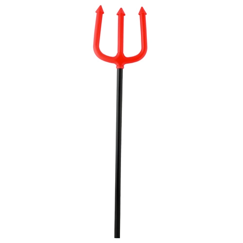 Trident en plastique léger et cornes sur serre-tête qui complètent le costume et rendent très bien en photo.