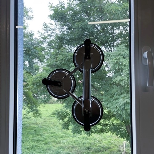 Trois grandes ventouses répartissent la charge et permettent de manipuler des panneaux lourds et fragiles sans risque d’endommagement.