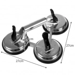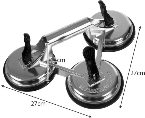 Cette ventouse triple en aluminium BIGSTREN robuste est un choix idéal pour les monteurs, vitriers et bricoleurs. Trois grandes ventouses en caoutchouc de 120 mm avec pression mécanique à levier offrent une fixation puissante et stable sur les surfaces lisses et non poreuses telles que le verre, le métal, l’émail ou le bois laqué.